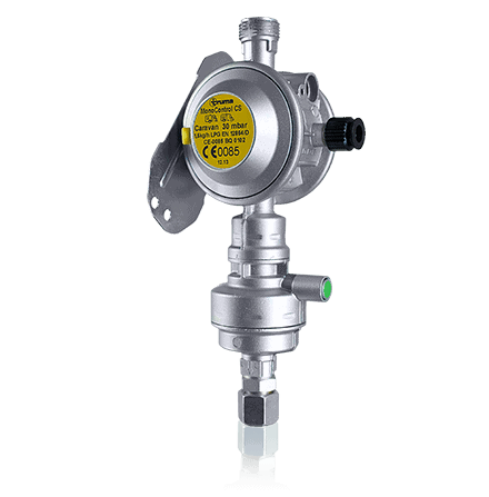 If you have a recreational vehicle produced from 2004 onwards you will probably have a Truma regulator fitted. The later style Truma regulators from approx. 2012 will have the crash sensing, Mono-control or Duo-control fitted, this is noticeable by the green push button which is part of the lower regulator assembly. The crash sensing regulator works by detecting G shock whilst driving for example if the vehicle is in an accident. The CS regulator also detects potholes, speed reduction humps, raised cats eyes and any rough roads as a few examples.